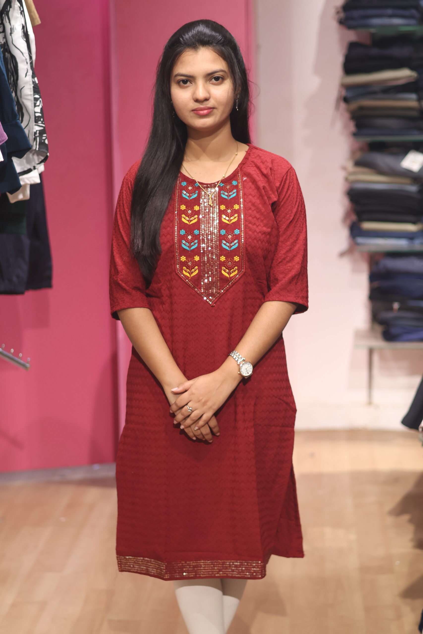 A lightweight cotton or cotton-blend popcorn kurti combo is good for summer, but avoid thick polyester popcorn fabric.