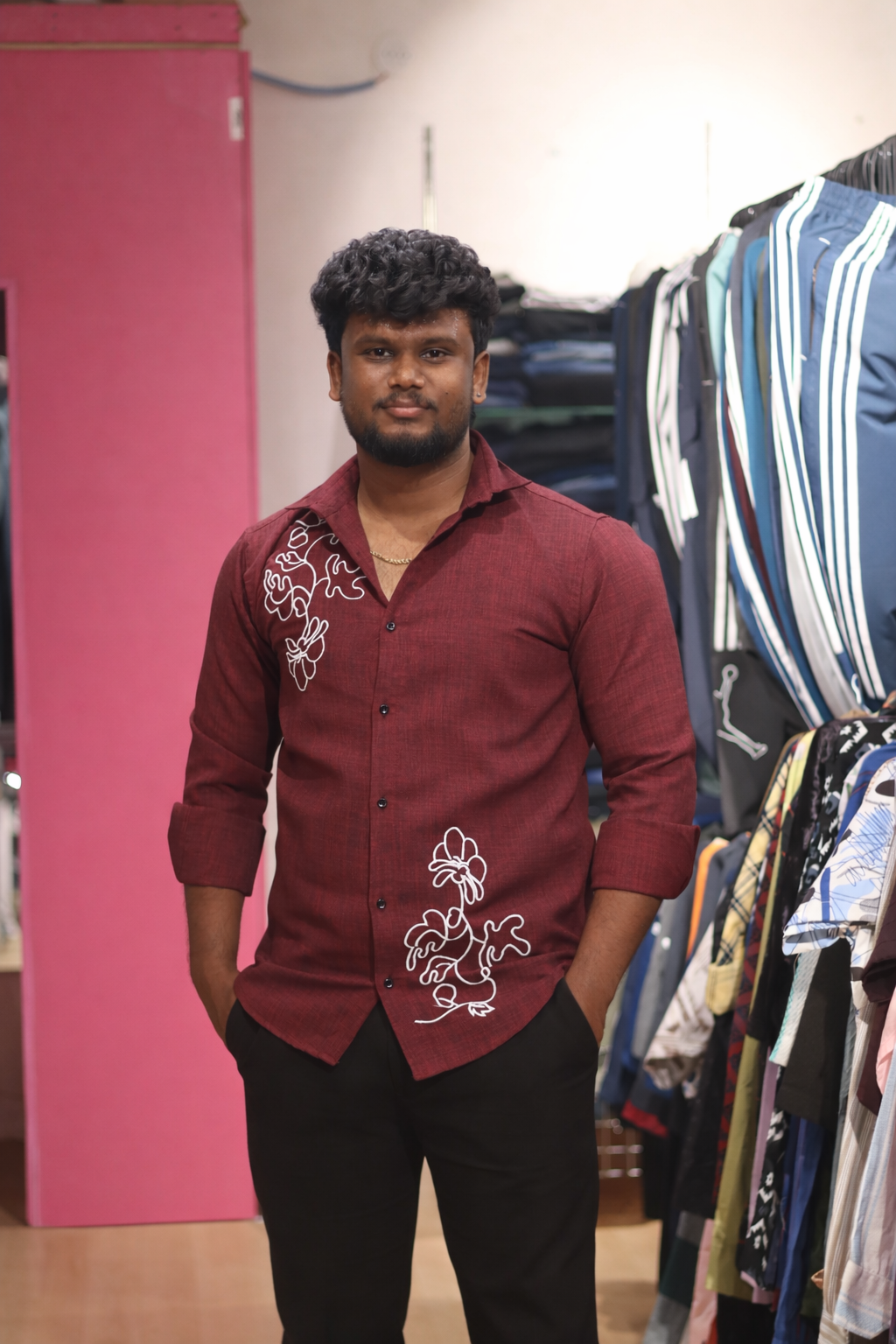 Embroidered linen shirts can give a very cool + classy party wear look. The embroidery adds design details, while linen fabric keeps the outfit light, premium, and stylish. Linen is breathable and comfortable, which is why it’s popular for modern casual-party outfits