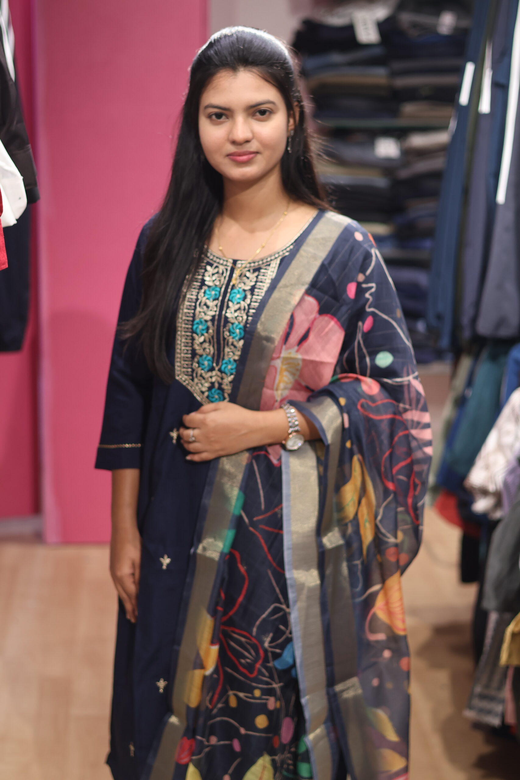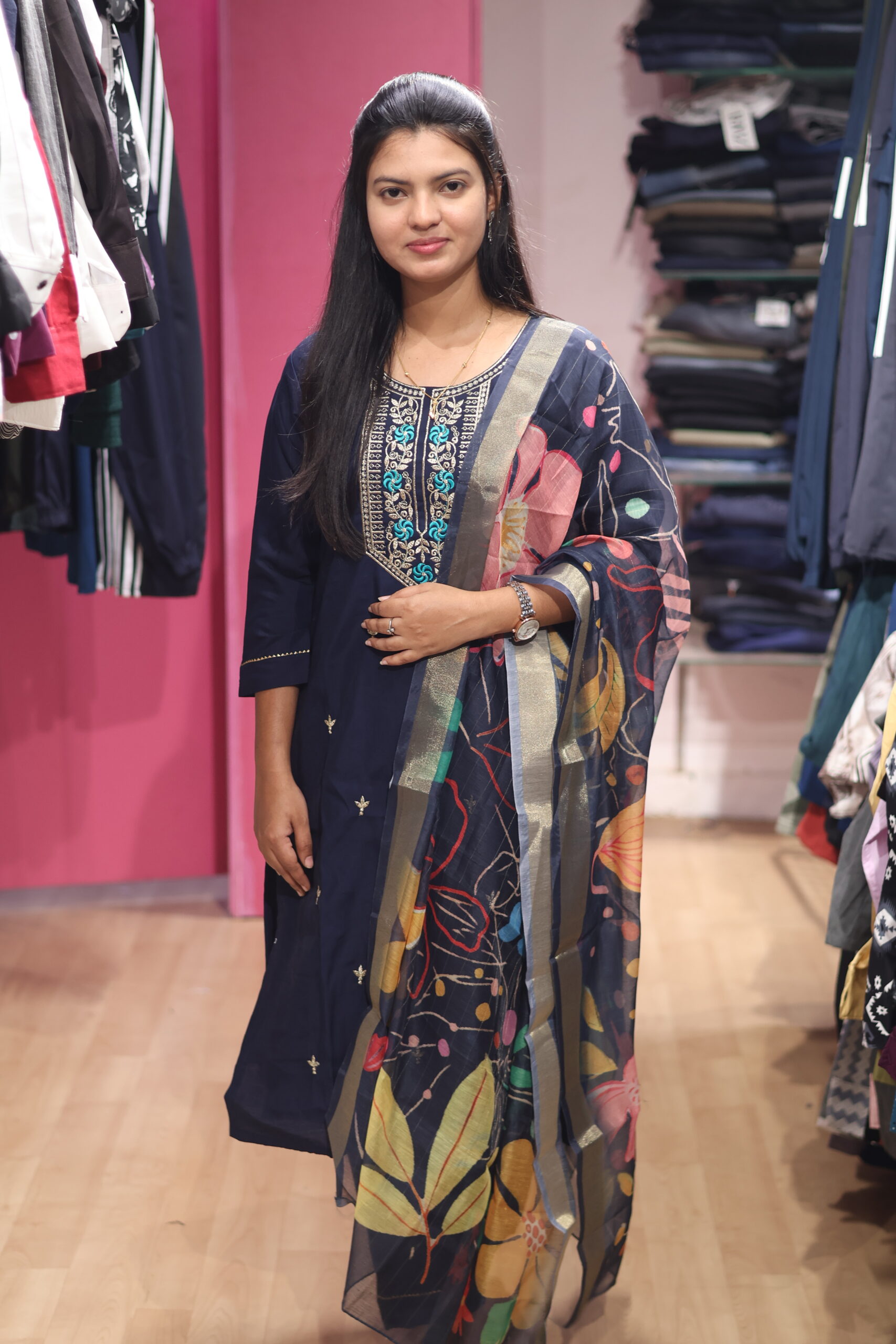 • Elegant embroidery / printed work for a rich look